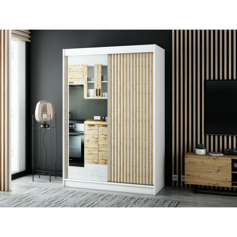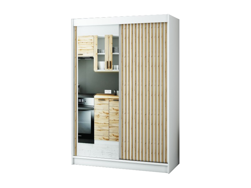 Dulap de haine 150 cm Ladonna 2 (alb mat) (cu oglindă)