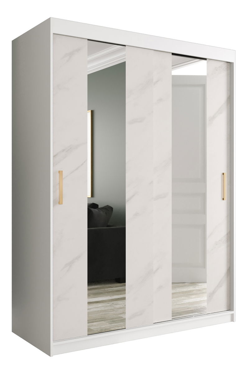 Dulap de haine 150 cm Marbelo P (mat alb + marmură albă)