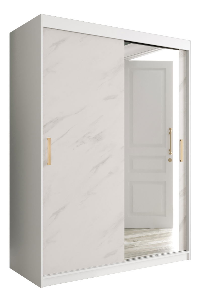 Dulap de haine 150 cm Marbelo T2 (mat alb + marmură albă)