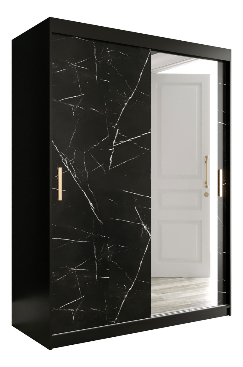 Dulap de haine 150 cm Marbelo T2 (mat negru + marmură neagră)
