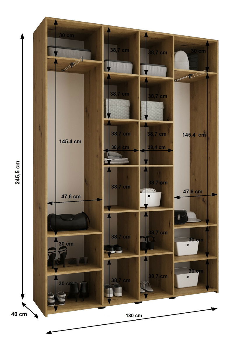 Dulap de haine 180 cm Carmela 40-2 (alb + Negru)