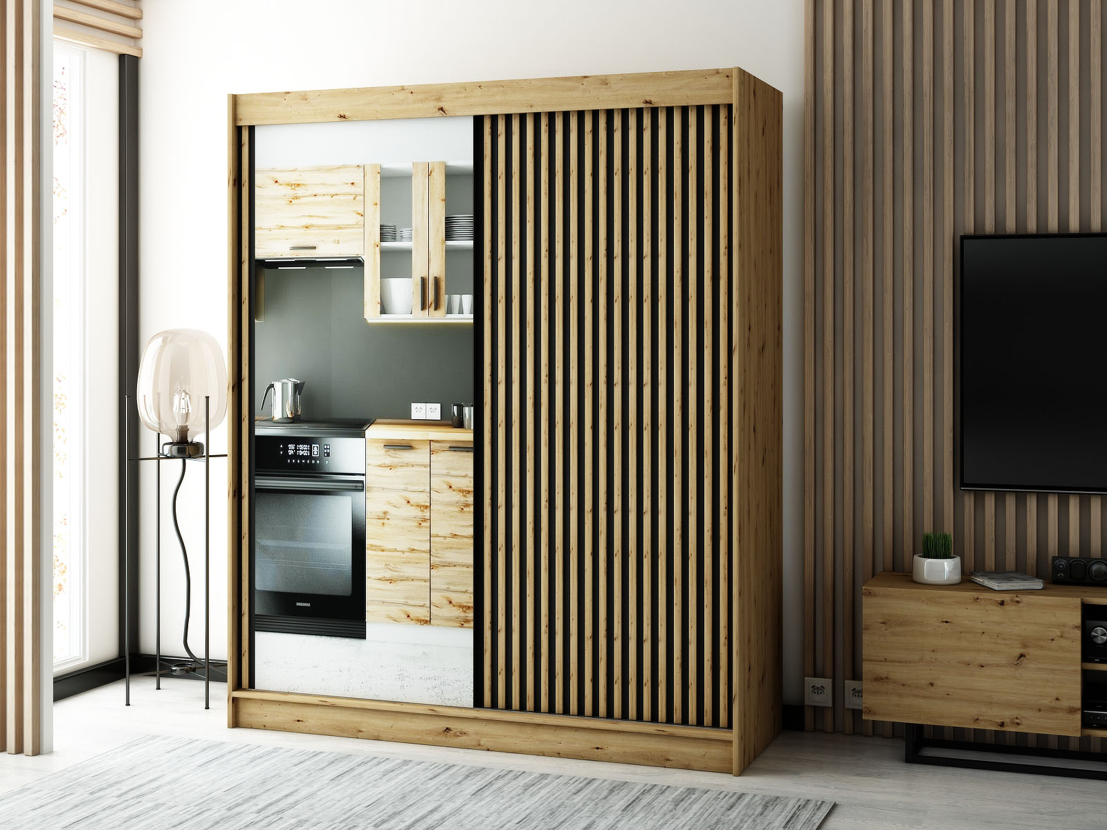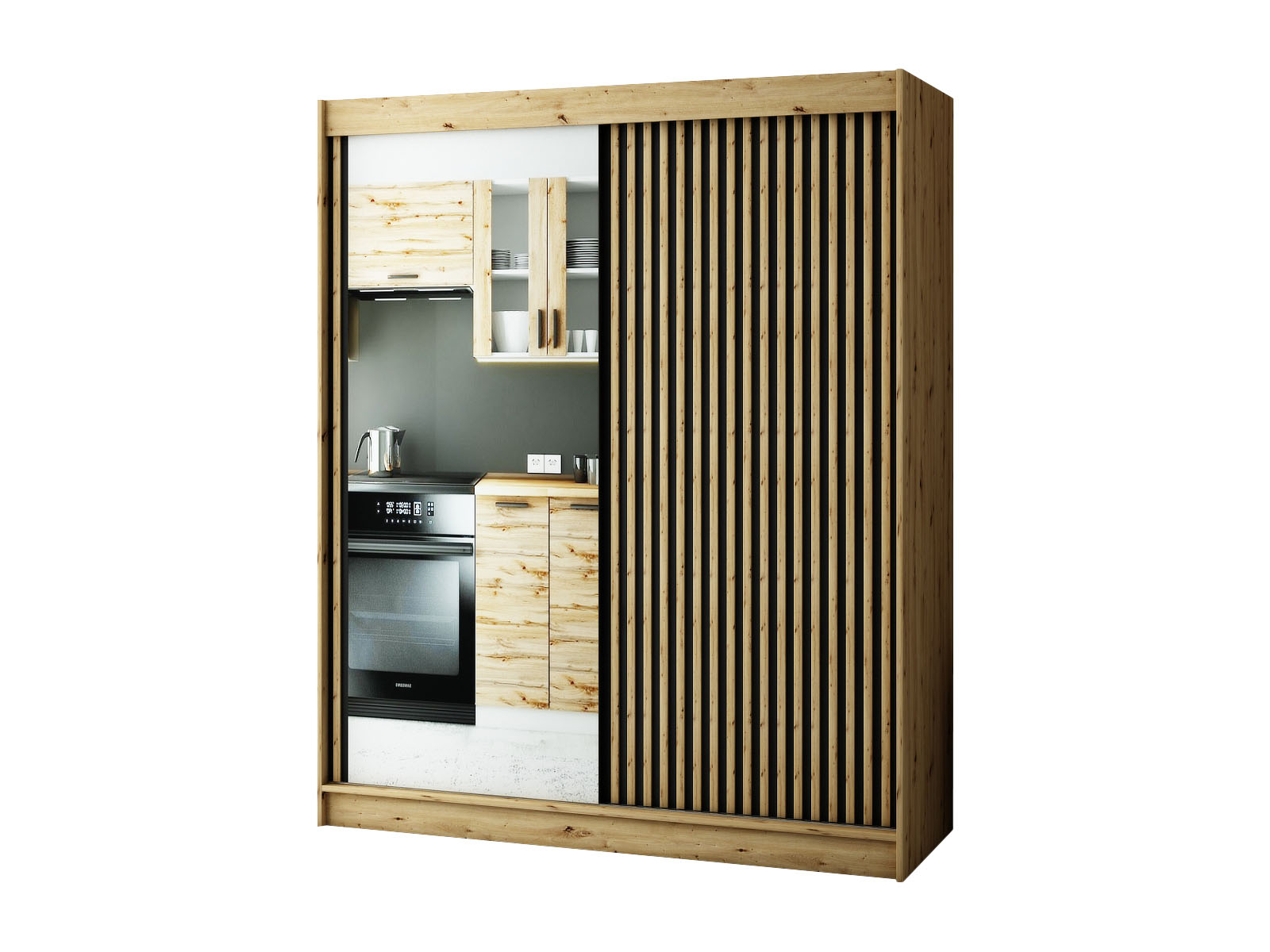 Dulap de haine 180 cm Ladonna 2 (Stejar artisan + Negru mat) (cu oglindă)
