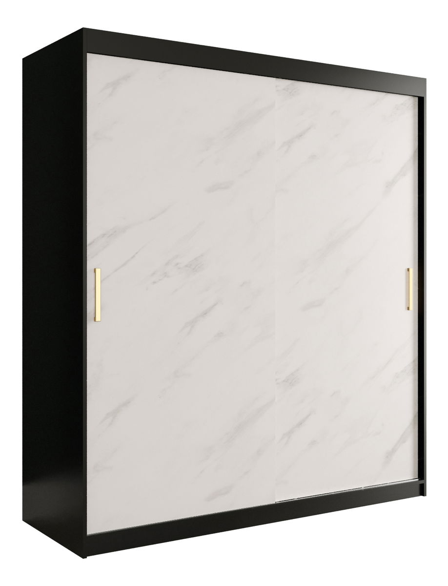 Dulap de haine 180 cm Marbelo T (mat negru + marmură albă)