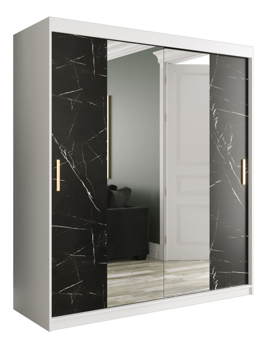 Dulap de haine 180 cm Marbelo T1 (mat alb + marmură neagră)