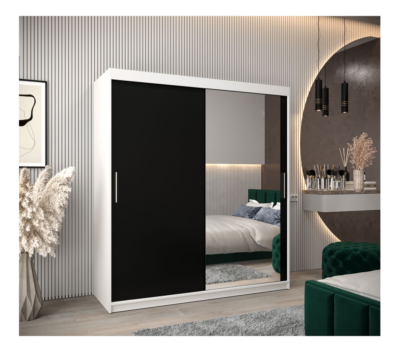 Dulap de haine 180 cm Toki 2 (alb mat + negru mat)