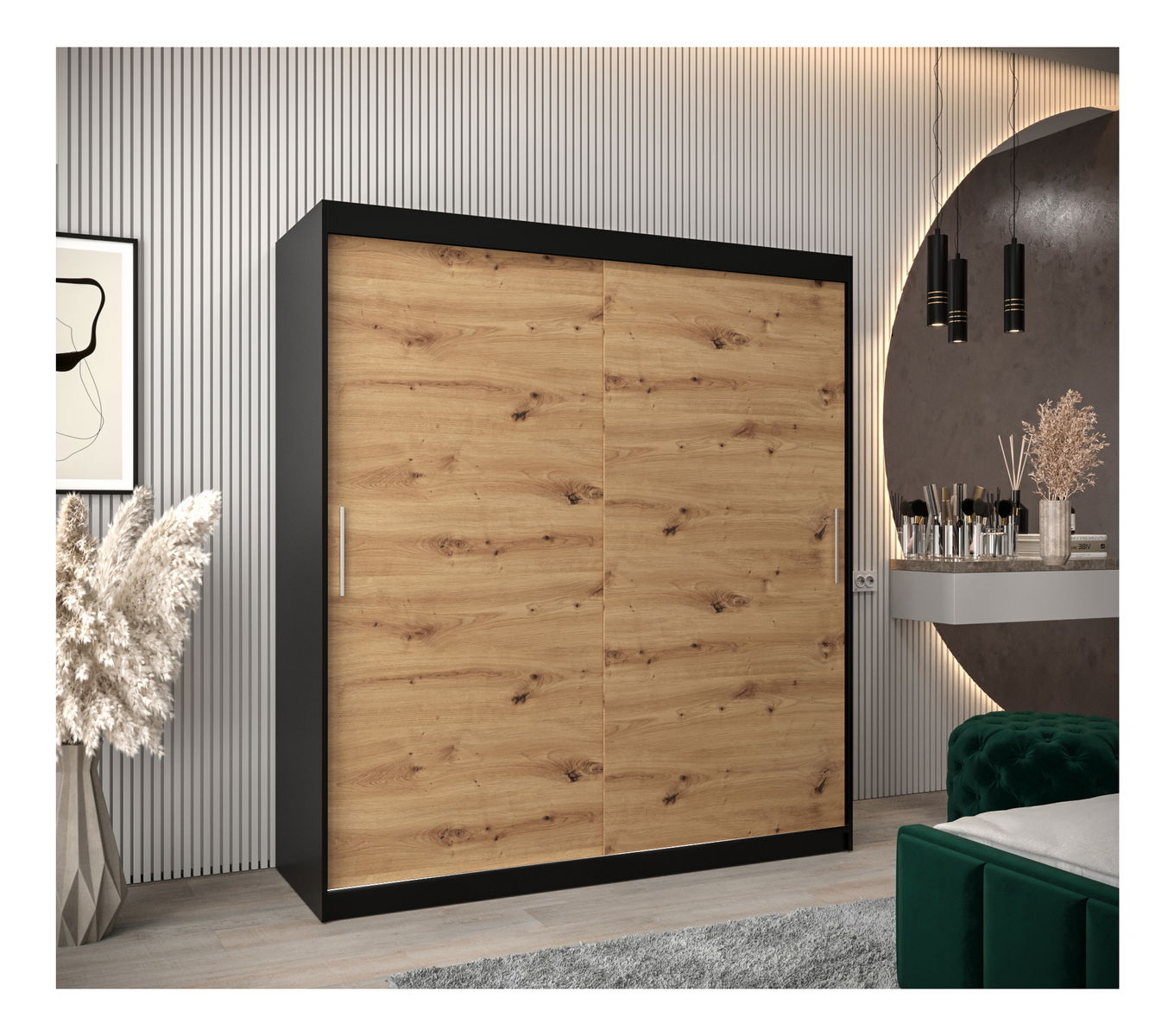 Dulap de haine 180 cm Toki (negru mat + stejar artisan)