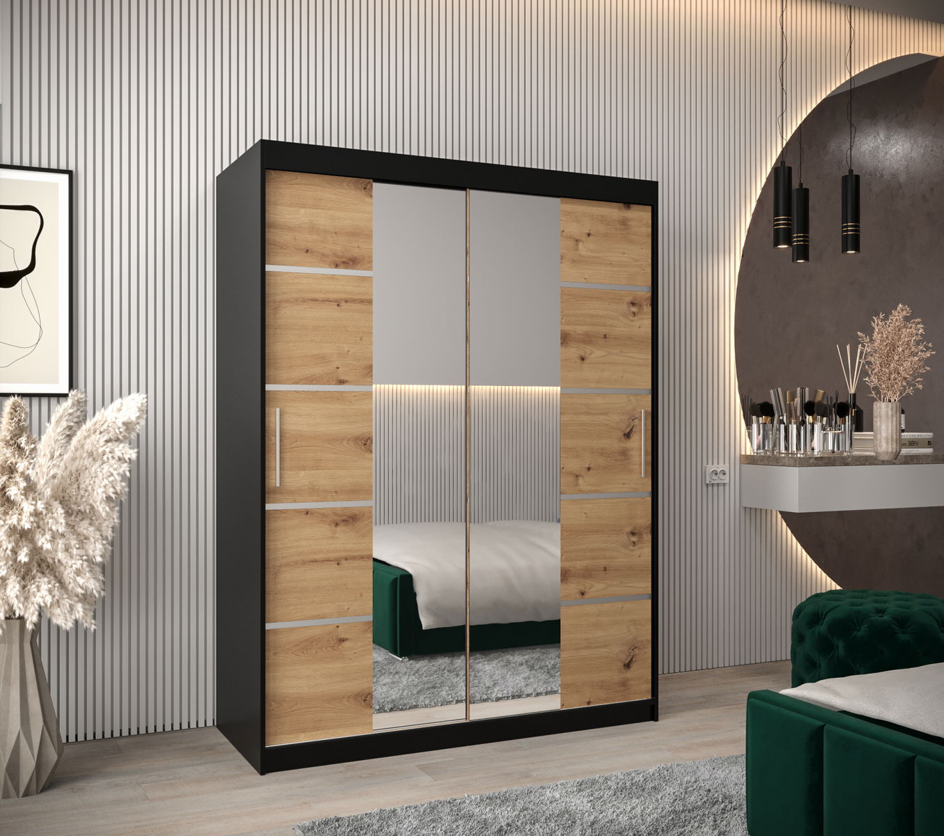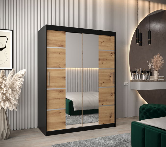 Dulap de haine 180 cm Verika 4 180 (negru + stejar artisan)