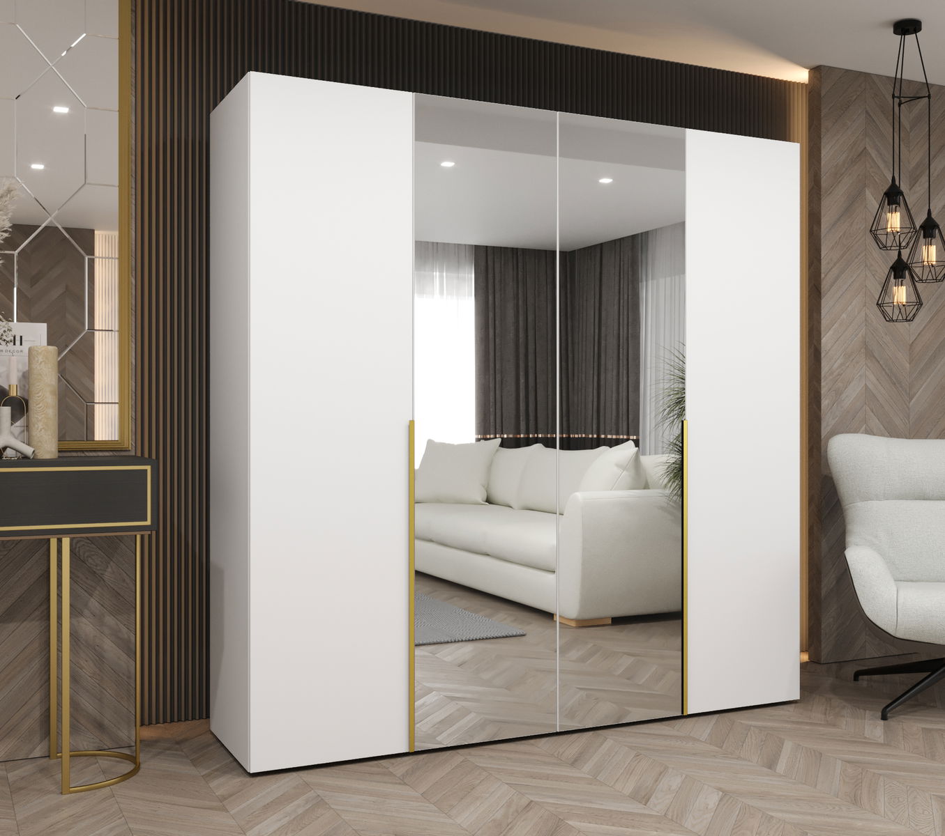 Dulap de haine 200 cm Alice 2 (alb + Auriu)