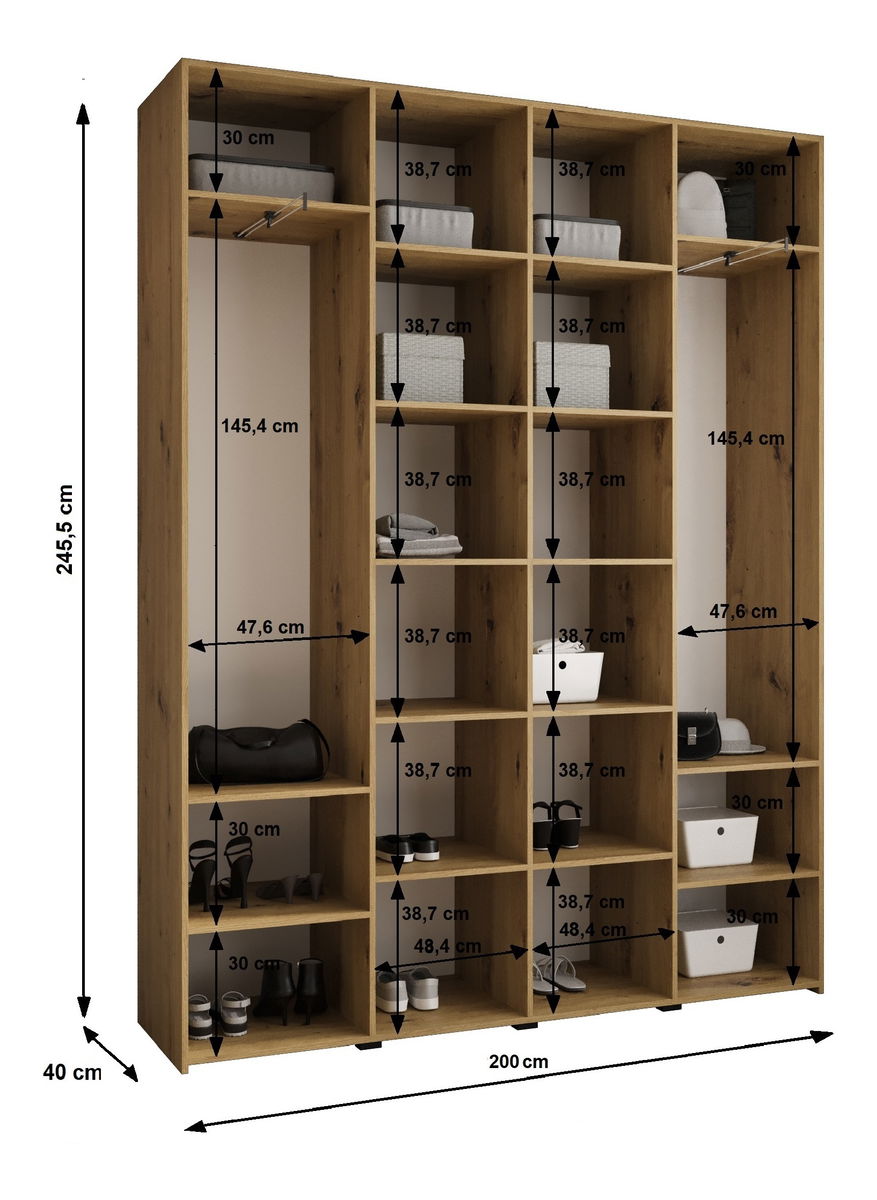 Dulap de haine 200 cm Carmela 40-2 (alb + Negru)