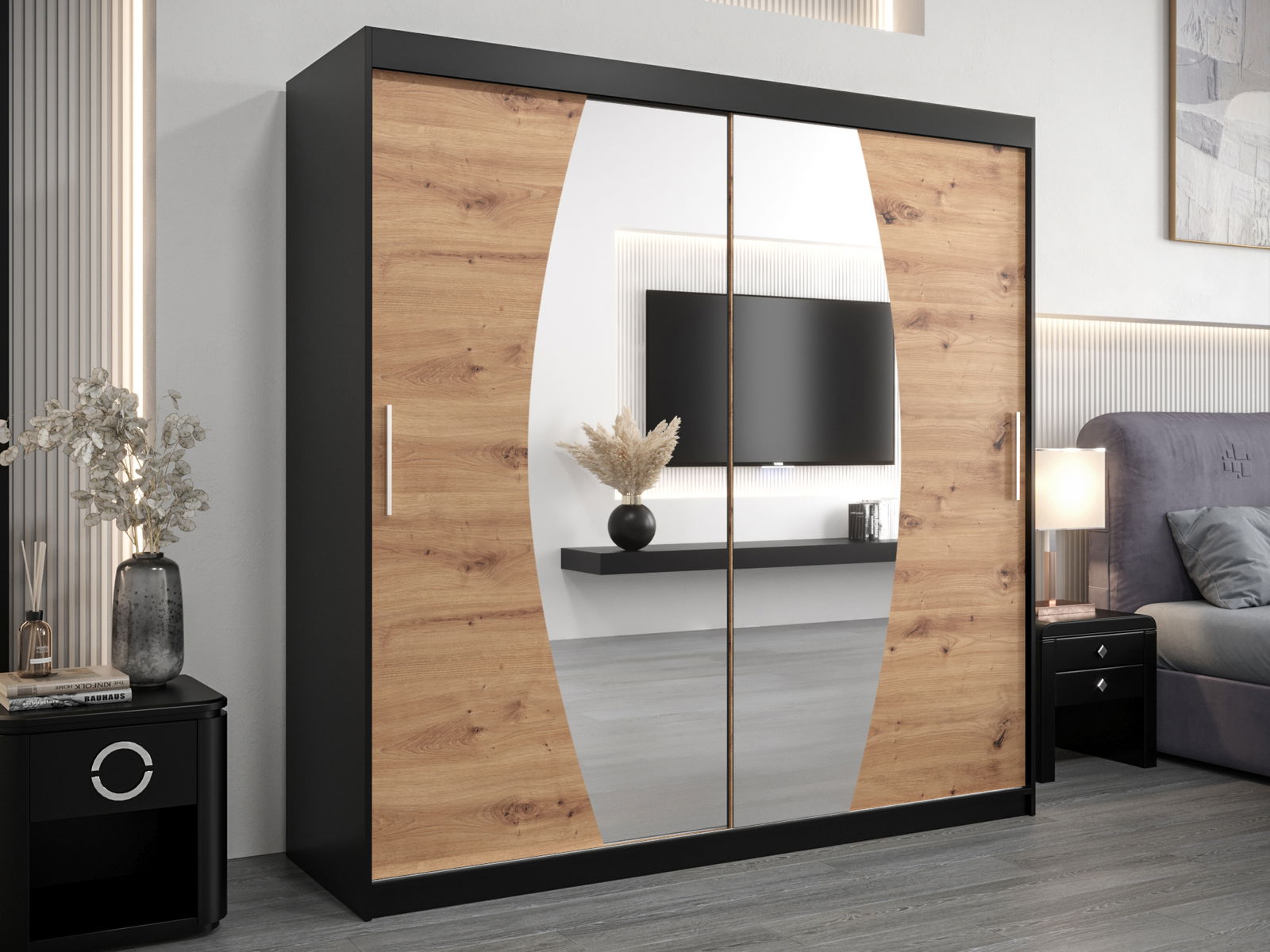 Dulap de haine 200 cm Eclipse (Negru mat + Stejar artisan)