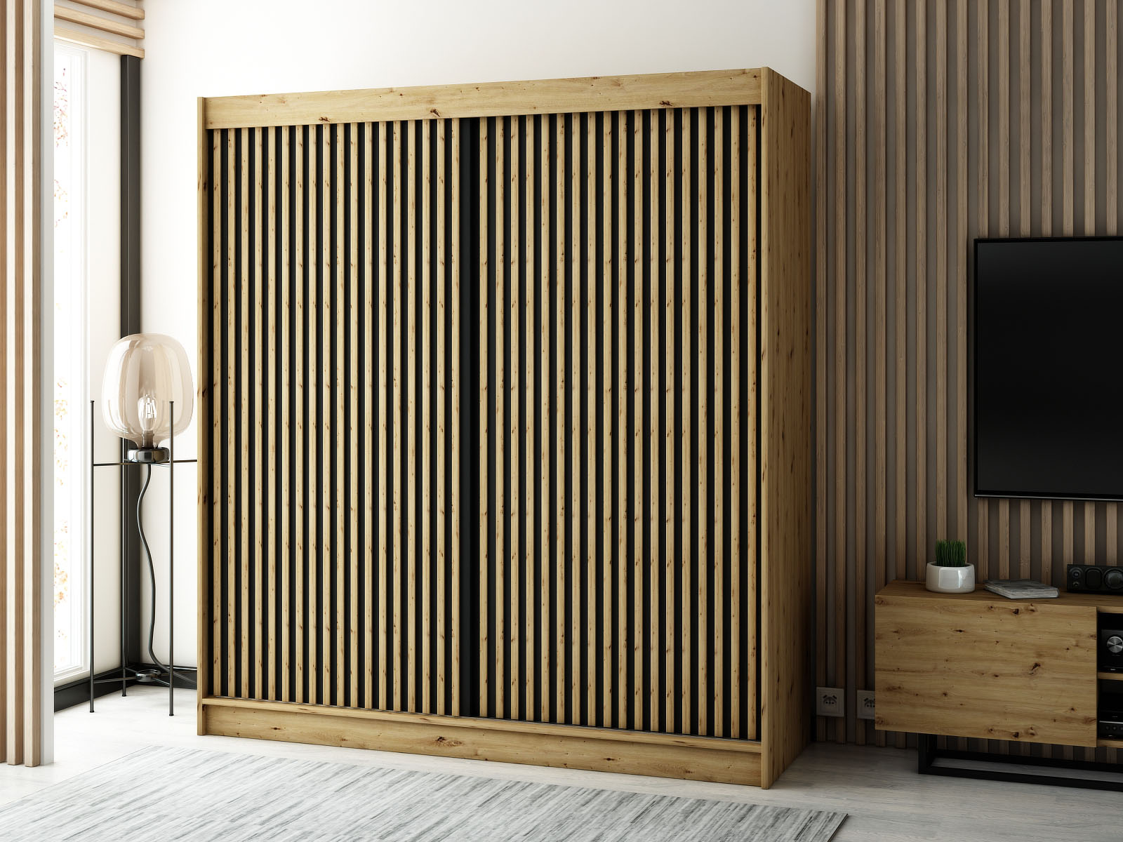 - Dulap de haine 200 cm Ladonna 1 (Stejar artisan + Negru mat)