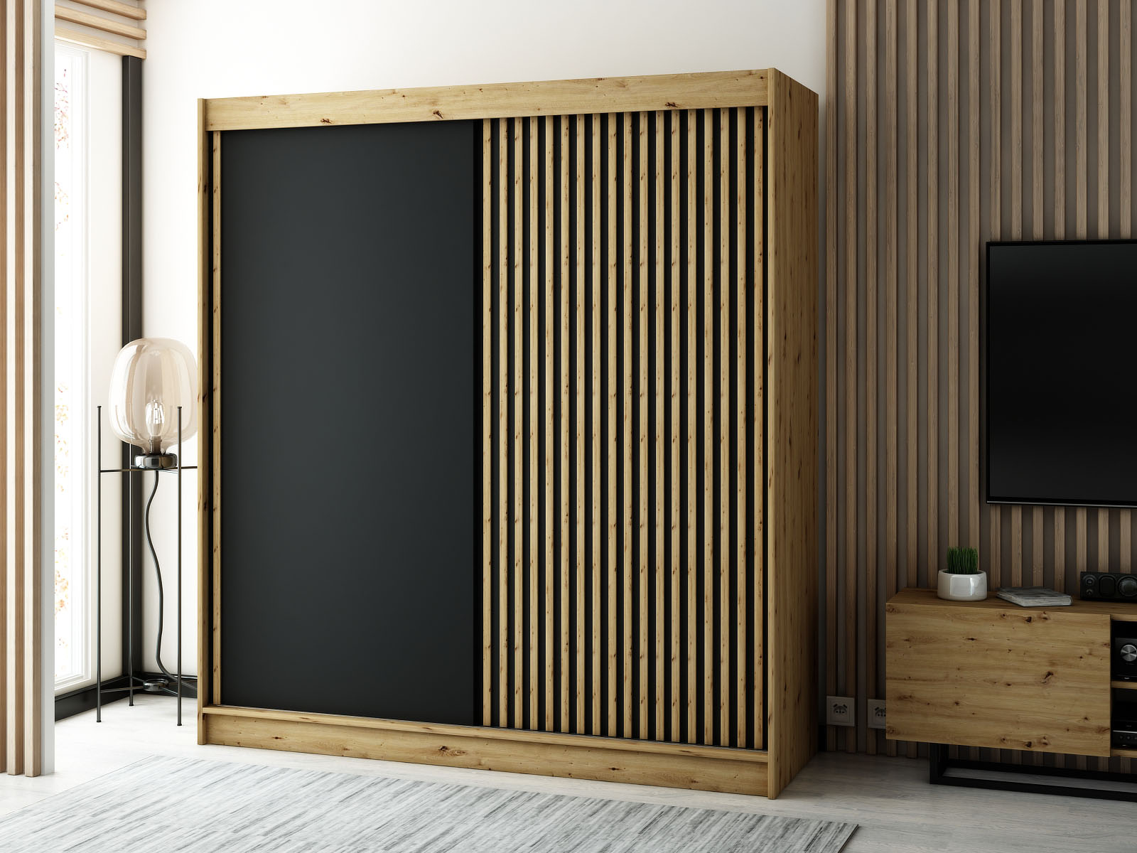 - Dulap de haine 200 cm Ladonna (negru mat)