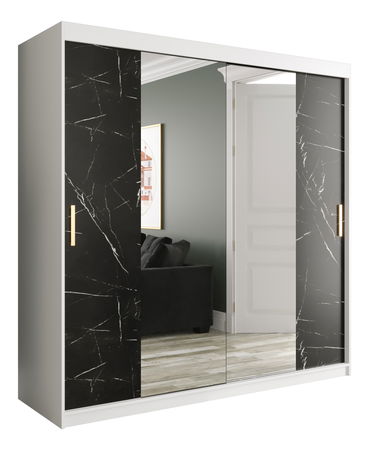 Dulap de haine 200 cm Marbelo T1 (mat alb + marmură neagră)