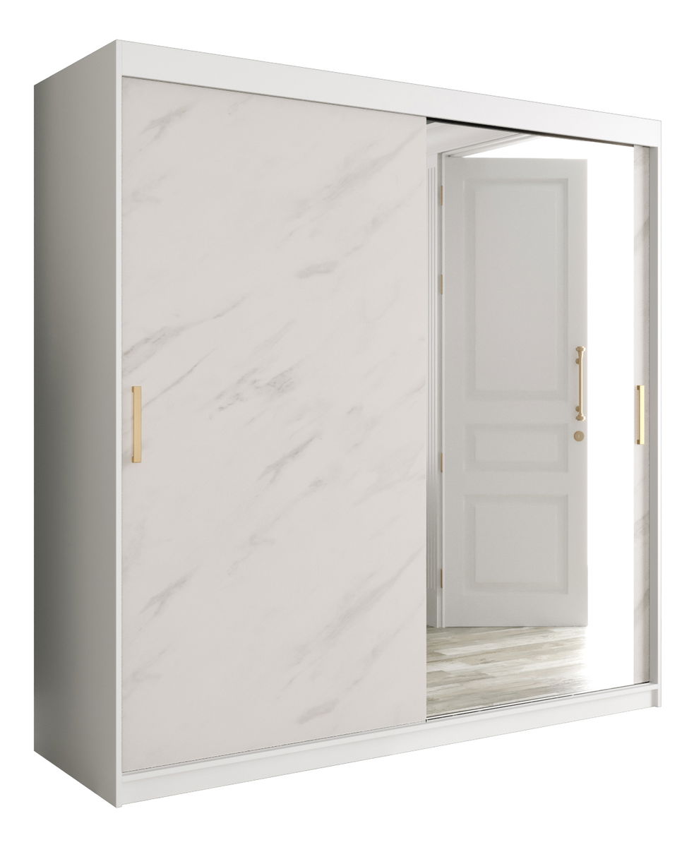 Dulap de haine 200 cm Marbelo T2 (mat alb + marmură albă)