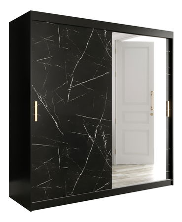 Dulap de haine 200 cm Marbelo T2 (mat negru + marmură neagră)