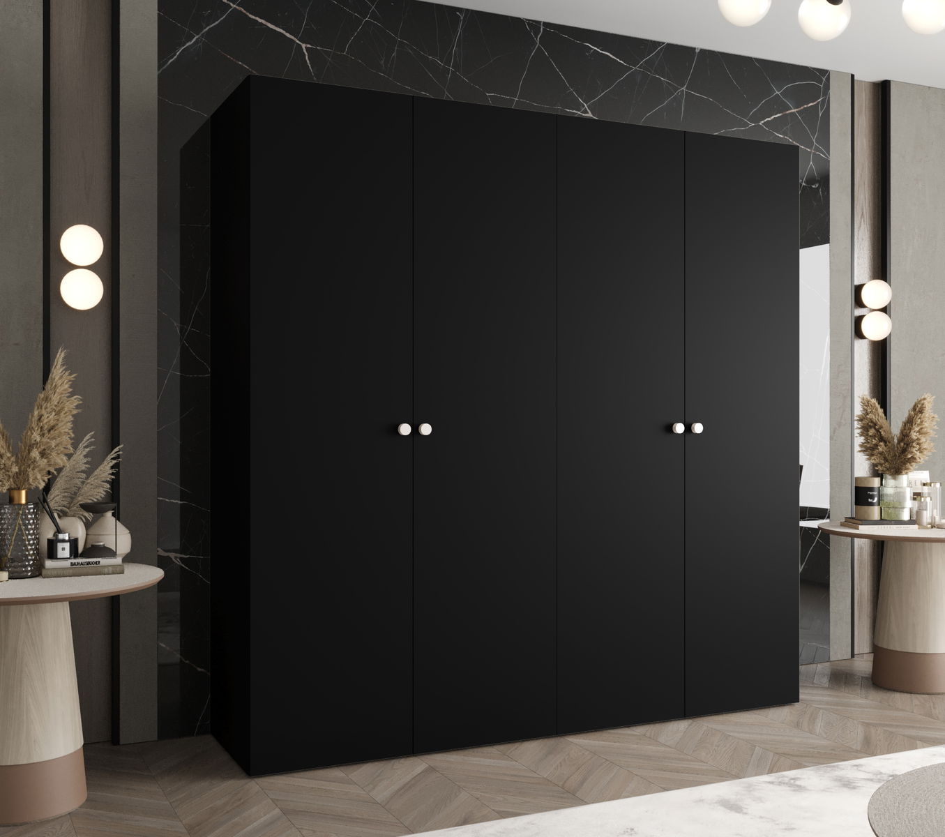 Dulap de haine 200 cm Parna 1 (Negru + Argintiu)