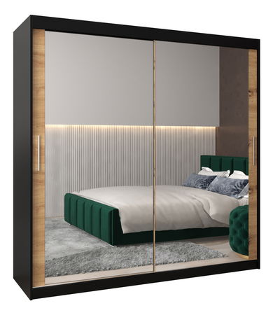 Dulap de haine 200 cm Toki 3 (negru mat + stejar artisan)