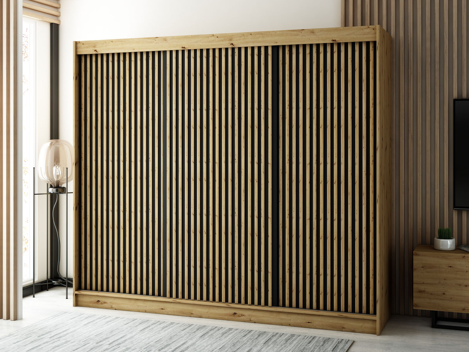 Dulap de haine 250 cm Ladonna 1 2 (Stejar artisan + Negru mat)