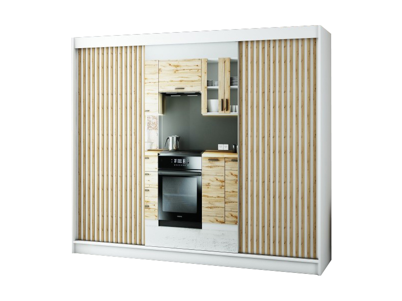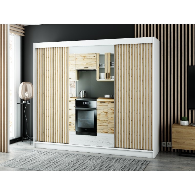 - Dulap de haine 250 cm Ladonna 2 (alb mat) (cu oglindă)