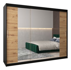 Dulap de haine 250 cm Toki 2 (negru mat + stejar sonoma)