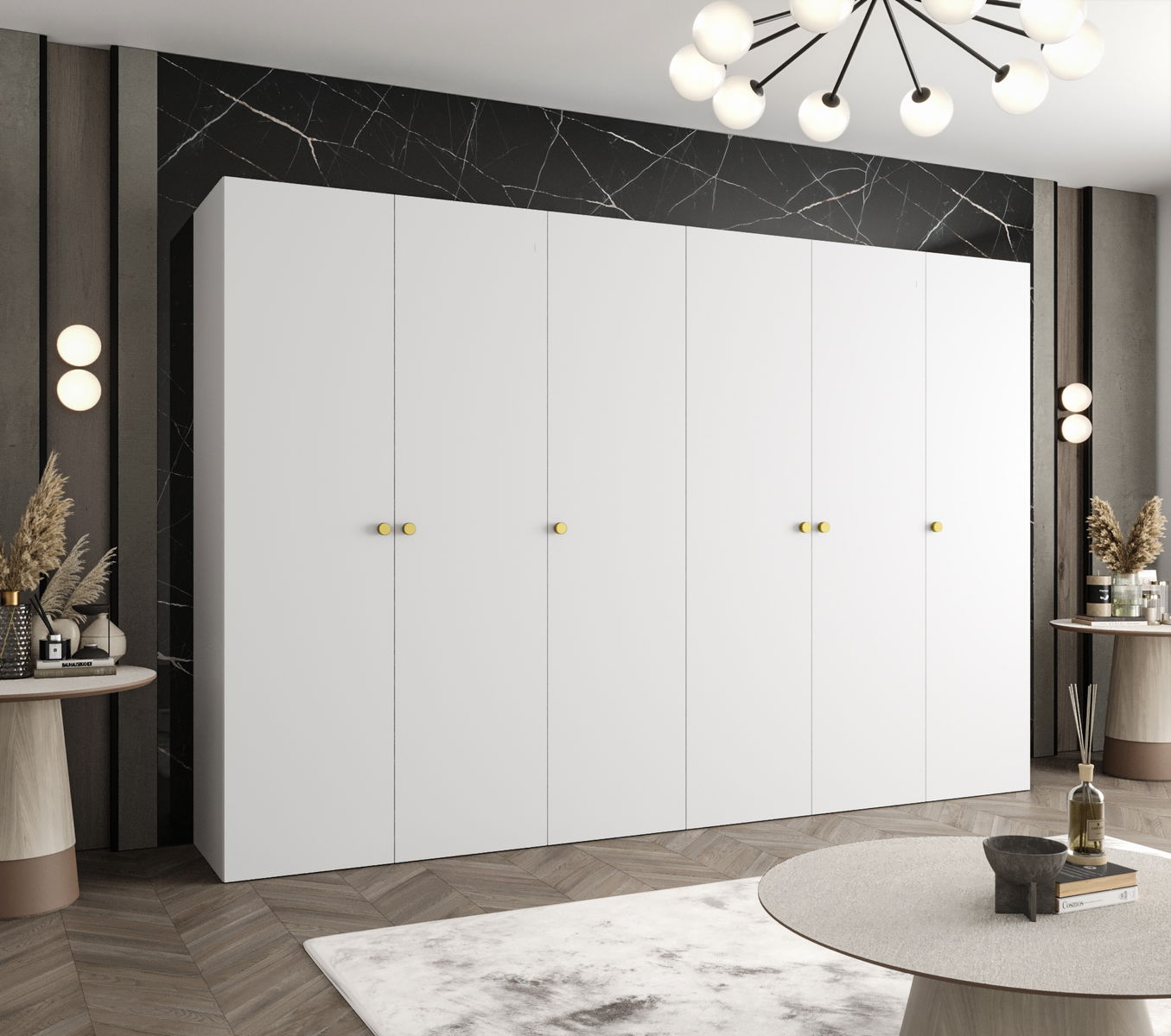 Dulap de haine 300 cm Parna 1 (alb + Auriu)