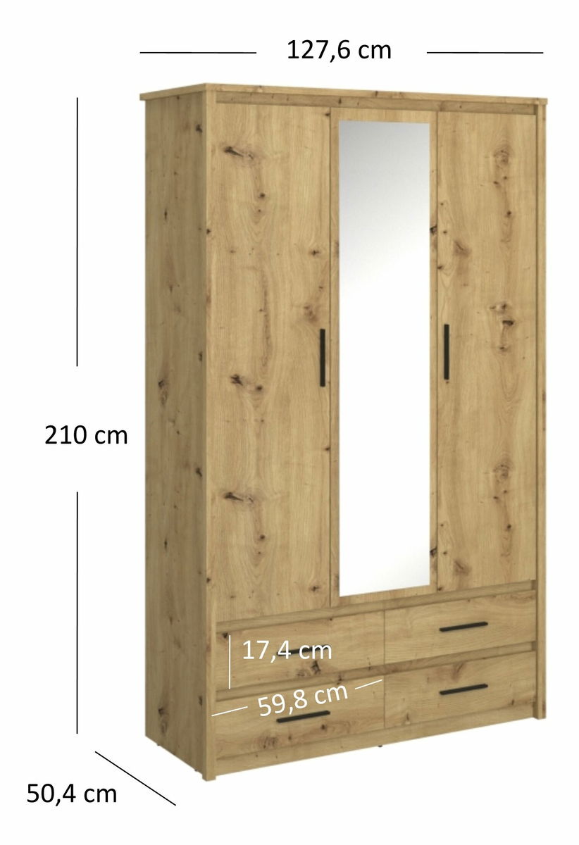 Dulap de haine Andra 3D4S (Stejar artisan)