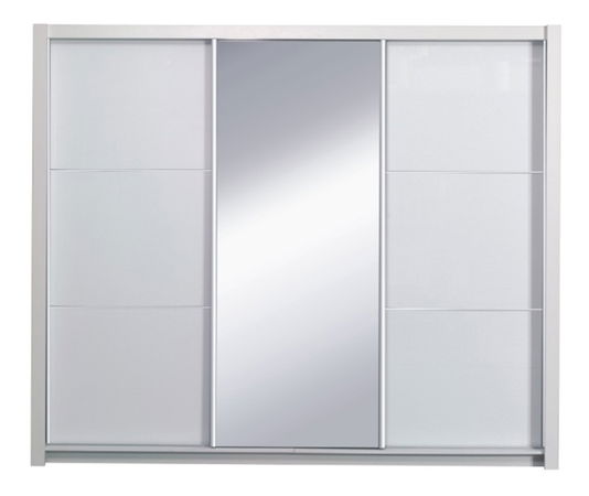 Dulap de haine cu uși glisante, oglindă și lățime de 250 cm, potrivit pentru un dormitor sau hol. Dulapul se livrează cu iluminat LED.
