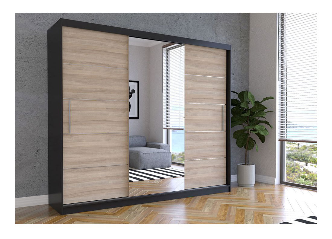- Dulap de haine Arrun (negru + stejar sonoma + Oglindă)
