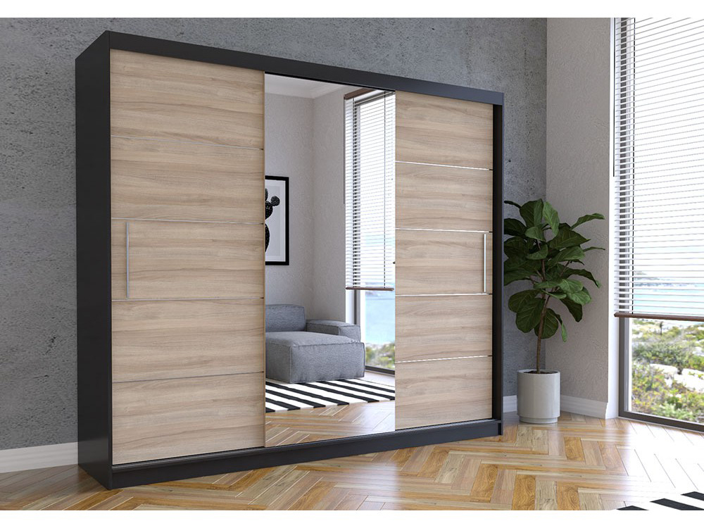 Dulap de haine Arrun (negru + stejar sonoma + Oglindă)