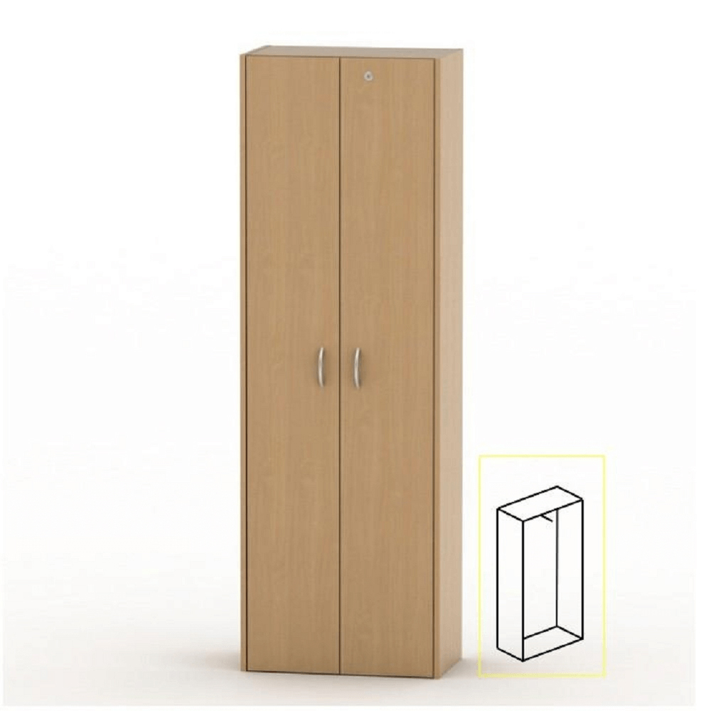 Dulapul de haine îngust în versiunea color de fag, va deveni ușor o parte utilizabilă a biroului dvs. Dulapul are uși cu posibilitatea închiderii și o bară pentru umerașe cu o capacitate de 5 kg.