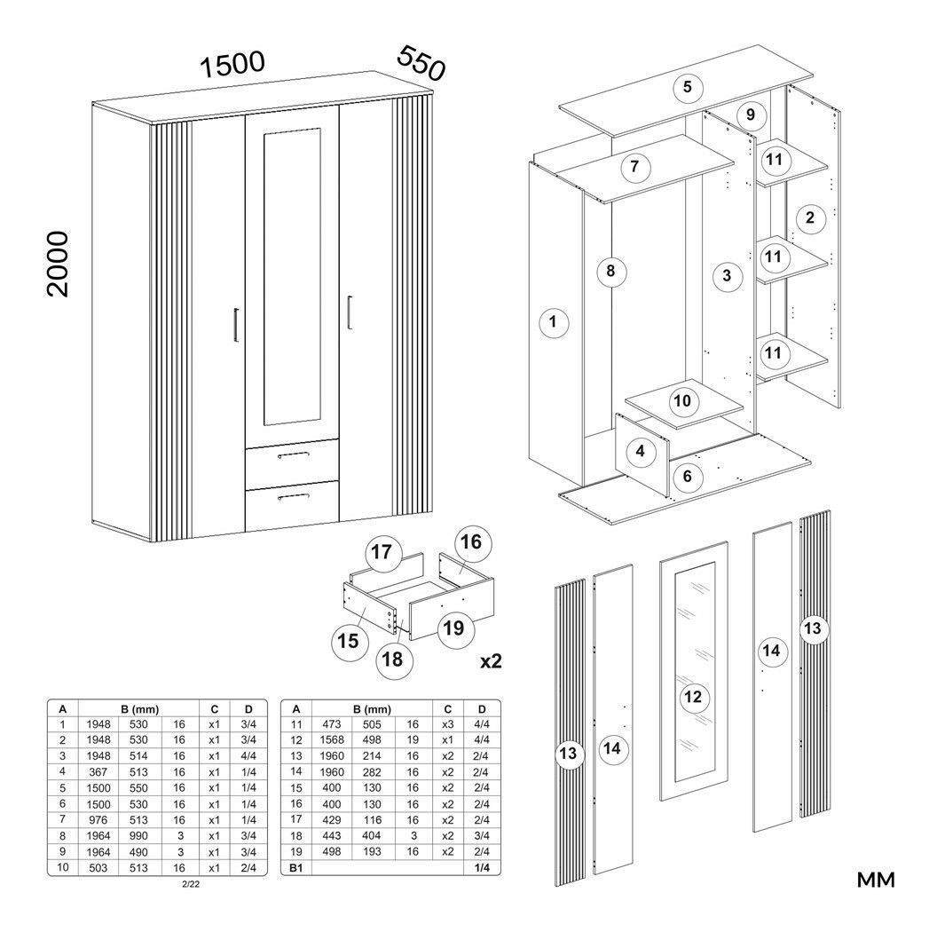 Dulap de haine Avala 1 (cashmir + stejar evoke) (cu oglindă)