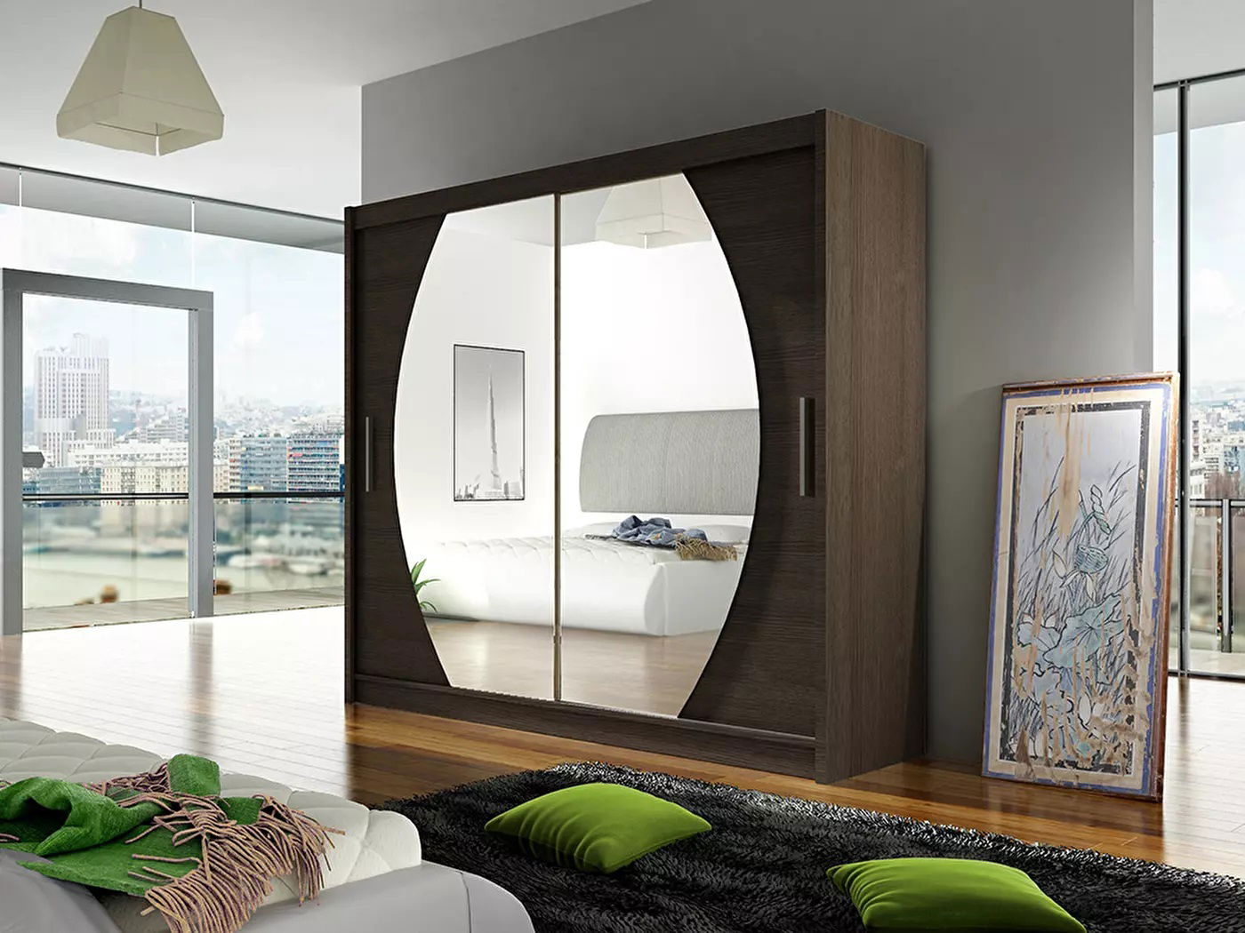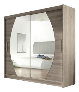 AfișeazăDulapul de haine elegant Bega IV poate fi dulapul potrivit pentru dvs. Oglinda rotunjită este elemntul dominant al dulapului. În interior veți găsi atât bară pentru umerașe precum și rafturi pe partea dreaptă. În partea superioară veți găsi rafturi deasemenea. Se livrează pe versiunea color de choco. Sistem culisant de deschidere.