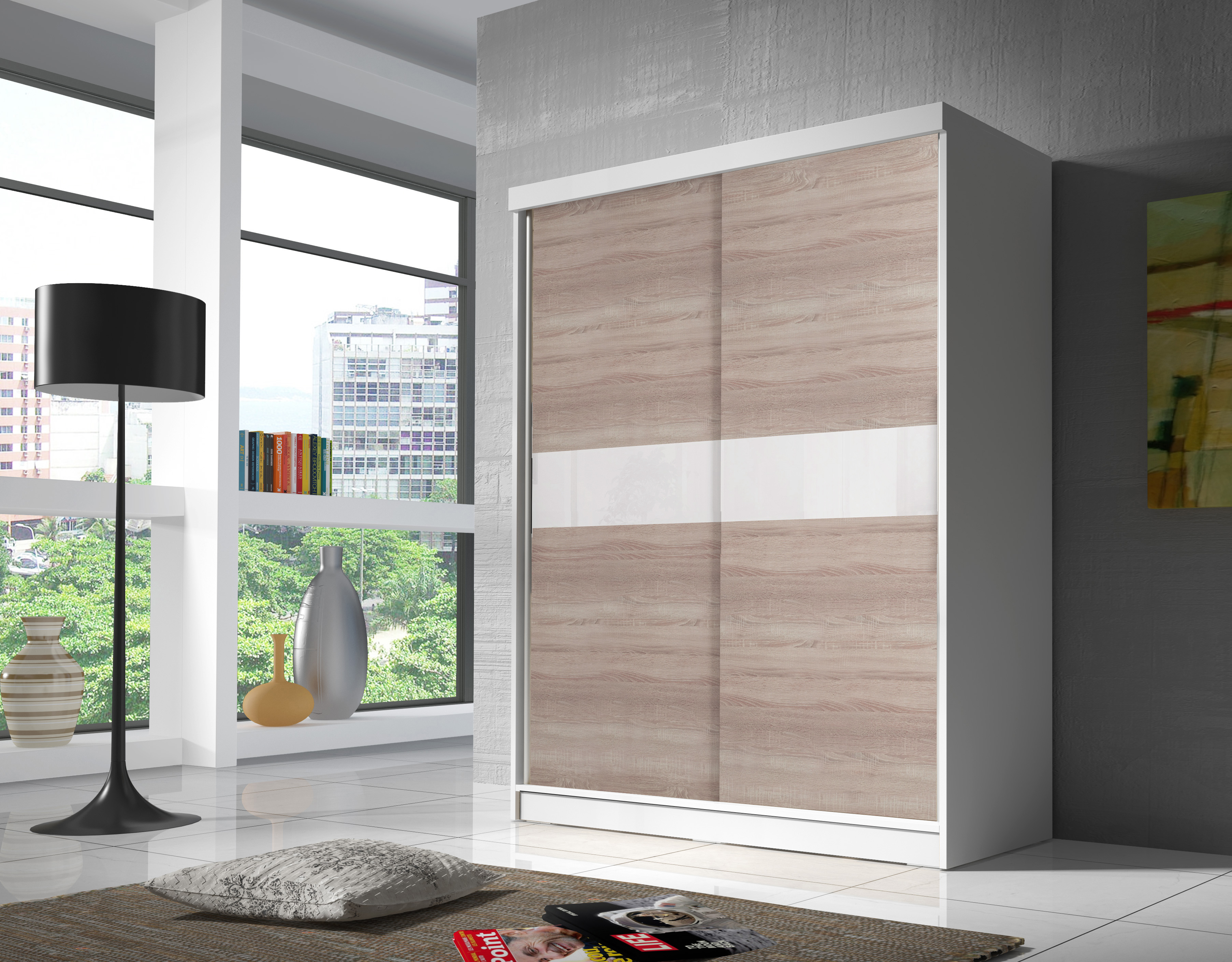- Dulap de haine Balor (alb + stejar sonoma + sticlă albă)