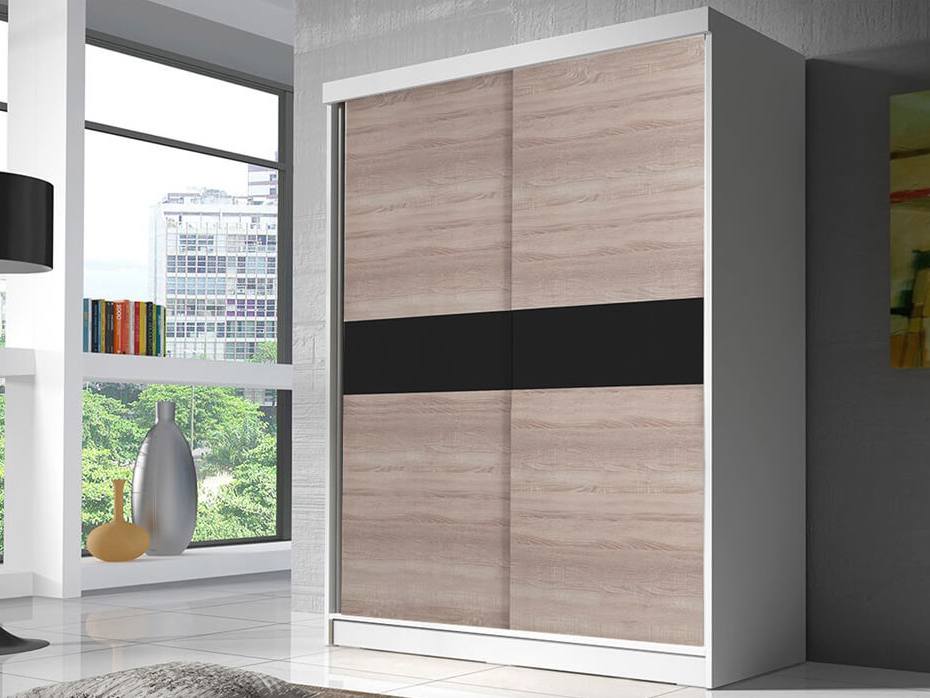 - Dulap de haine Balor (alb + stejar sonoma + sticlă neagră)