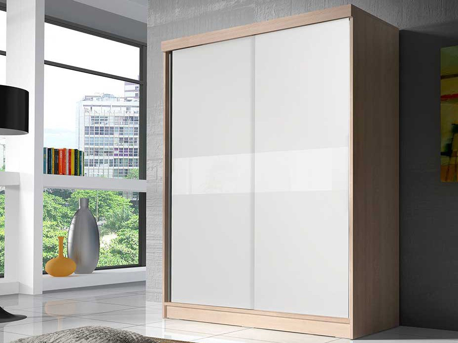 - Dulap de haine Balor (stejar sonoma + alb + sticlă albă)
