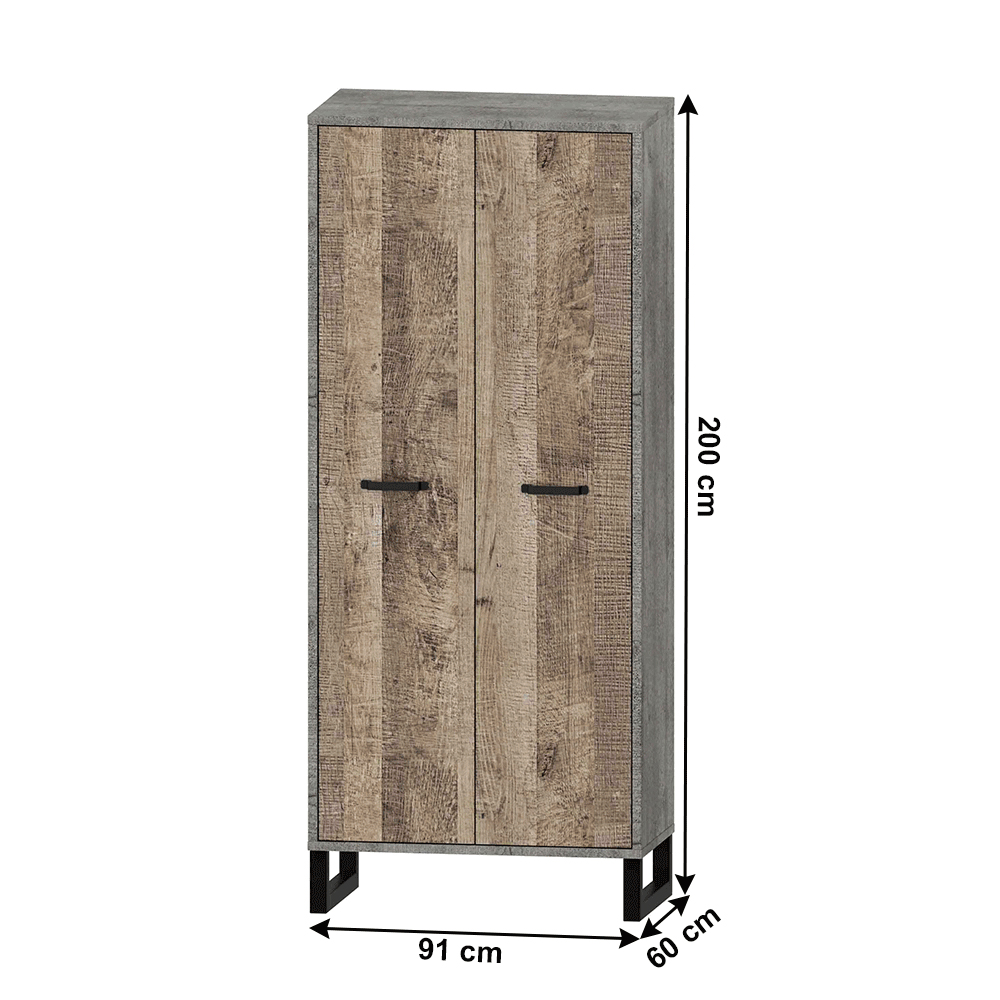 Dulap de haine Bareni 2D/90 (Stejar nisipiu + gri)