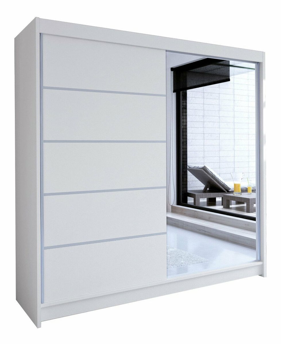 AfișeazăDulapul glisant modern potrivit pentru living, dormitor și hol. Datorită capacității sale mari și a soluțiilor extrem de funcționale, dulapul este potrivit și în garderobă. Interiorul dulapului conține rafturi spațioase și bară pentru umerașe. Oglinda situată în partea frontală are o funcție practică în interior - reflectă lumina, mărește optic spațiul.
