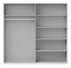 AfișeazăCombinația dintre un dulap cu rafturi și dulap pentru umerașe este un plus practic pentru fiecare dormitor sau hol. În partea stângă puteți agăța hainele pe tija dulapului, iar în partea dreaptă se află rafturi. Ușile glisante economisesc spațiu în cameră. Dulapul conține oglinzi pe ușile glisante.