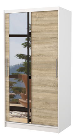 Dulap de haine Beral (Alb + Stejar sonoma) (cu oglindă)