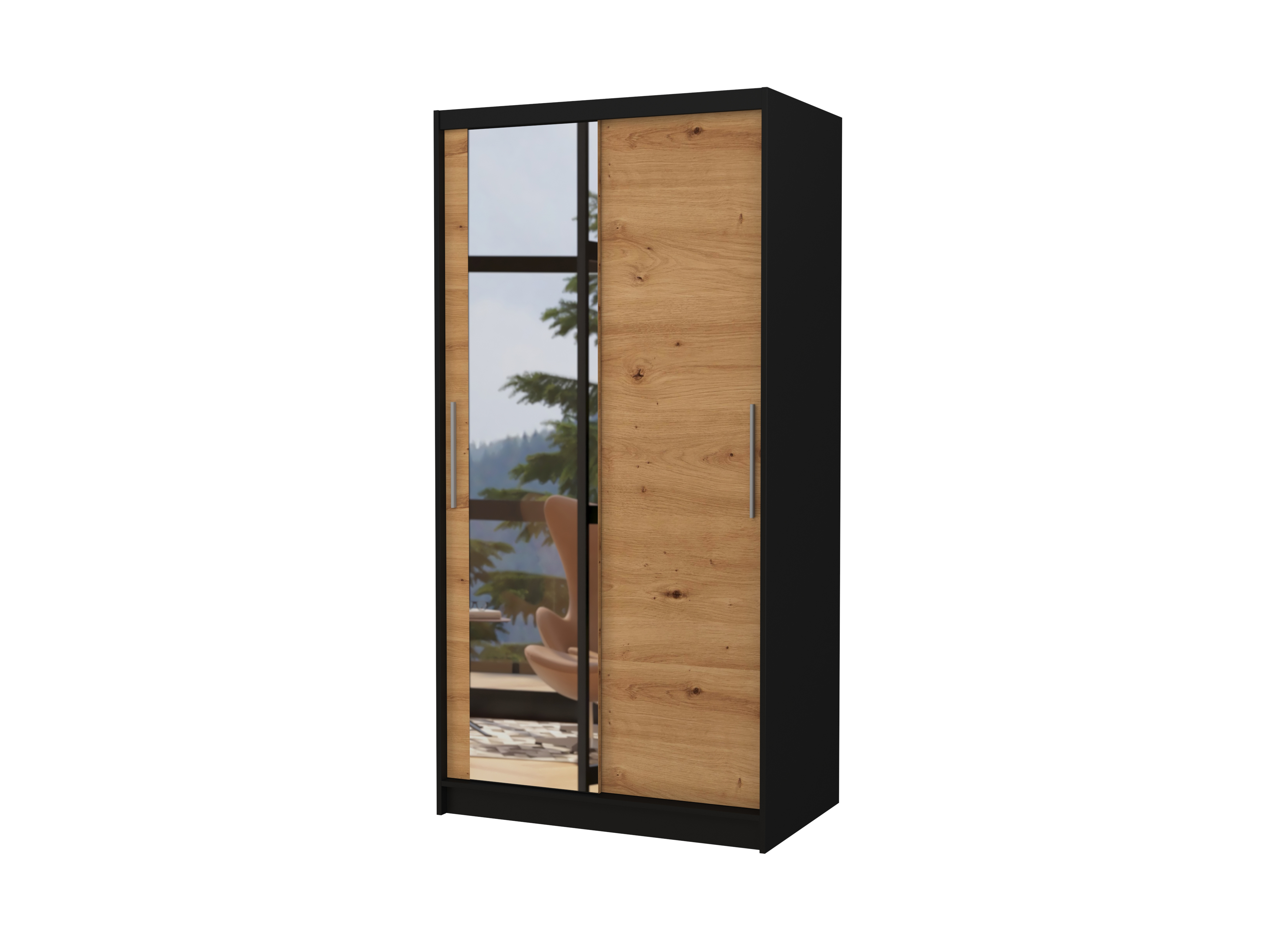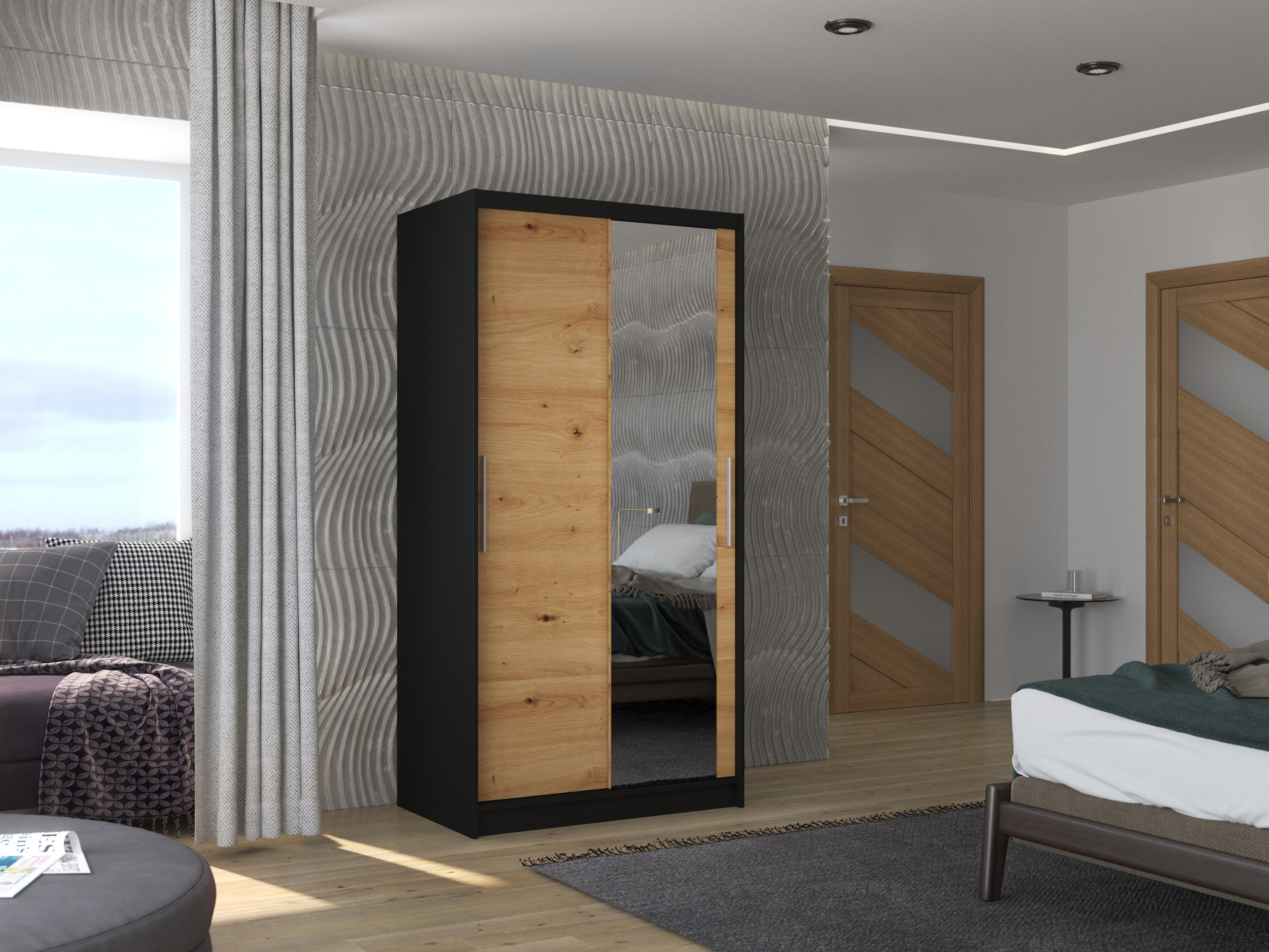 Dulap de haine Beral (Negru + Stejar artisan) (cu oglindă)