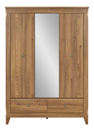 AfișeazăDulapul de haine Bergen oferă un spațiu generos de depozitare. Dulapul cu trei uși are o parte pentru umerașe, sertare și rafturi. Puteți aranja în ea totul fără să aglomerați. Ușile spațioase sunt prevăzute cu o oglindă mare care vă va ajuta la alegerea și combinarea hainelor.