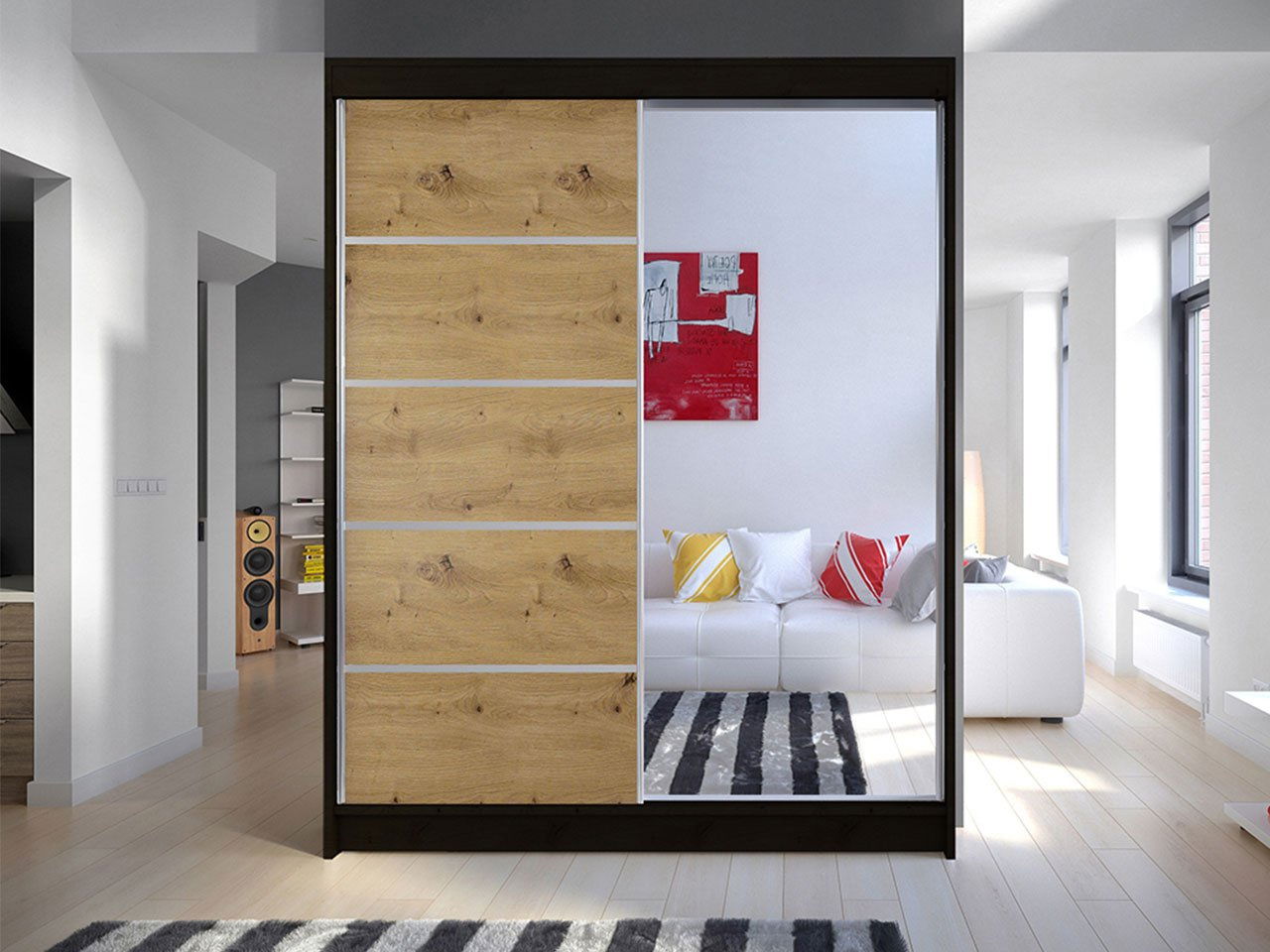 Dulap de haine Bianca III (Negru + stejar artisan) (fără iluminat)