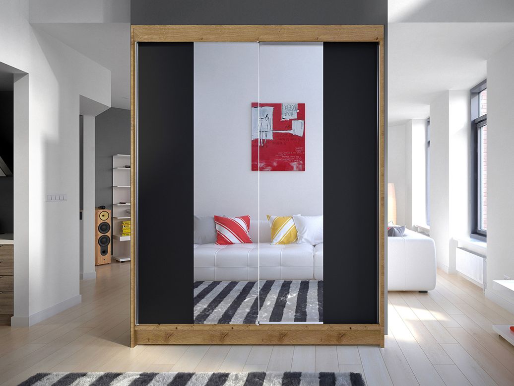 Placa laminată are grosime de 16 mm Sistemul ușilor este glisant Ghidaje din aluminiu Sevroll Mâner sub formă de bară de aluminiu de-a lungul ușii Mânerele din aluminiu împiedică îndoirea ușii > În colete veți găsi toate cele accesorile pentru asamblare și instrucțiunile de asamblare.