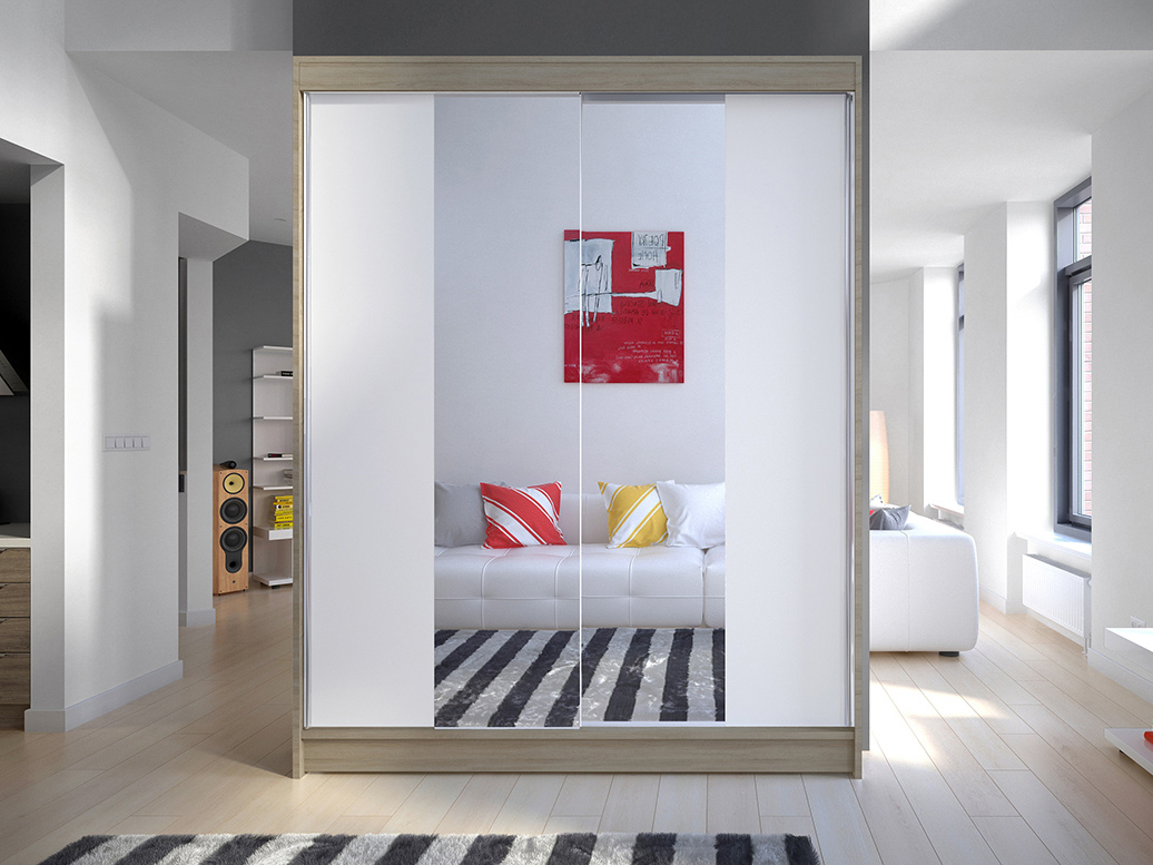 Placa laminată are grosime de 16 mm Sistemul ușilor este glisant Ghidaje din aluminiu Sevroll Mâner sub formă de bară de aluminiu de-a lungul ușii Mânerele din aluminiu împiedică îndoirea ușii > În colete veți găsi toate cele accesorile pentru asamblare și instrucțiunile de asamblare.
