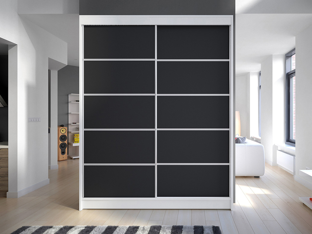 Placa laminată are grosime de 16 mm Sistemul ușilor este glisant Ghidaje din aluminiu Sevroll Mâner sub formă de bară de aluminiu de-a lungul ușii Mânerele din aluminiu împiedică îndoirea ușii > În colete veți găsi toate cele accesorile pentru asamblare și instrucțiunile de asamblare.