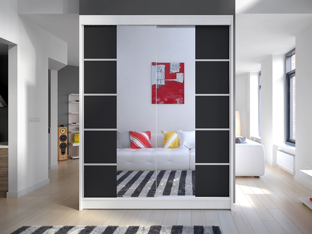 Placa laminată are grosime de 16 mm Sistemul ușilor este glisant Ghidaje din aluminiu Sevroll Mâner sub formă de bară de aluminiu de-a lungul ușii Mânerele din aluminiu împiedică îndoirea ușii > În colete veți găsi toate cele accesorile pentru asamblare și instrucțiunile de asamblare.