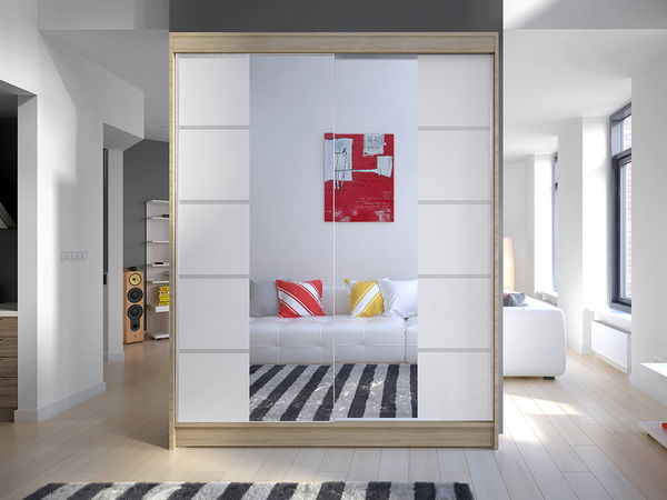 Placa laminată are grosime de 16 mm Sistemul ușilor este glisant Ghidaje din aluminiu Sevroll Mâner sub formă de bară de aluminiu de-a lungul ușii Mânerele din aluminiu împiedică îndoirea ușii > În colete veți găsi toate cele accesorile pentru asamblare și instrucțiunile de asamblare.