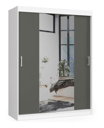 Dulap de haine Clotilde (Alb + gri) (cu oglindă)