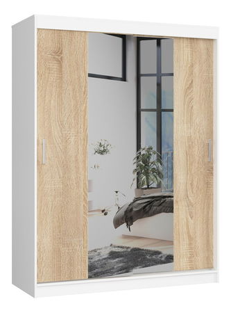 Dulap de haine Clotilde (Alb + stejar sonoma) (cu oglindă)