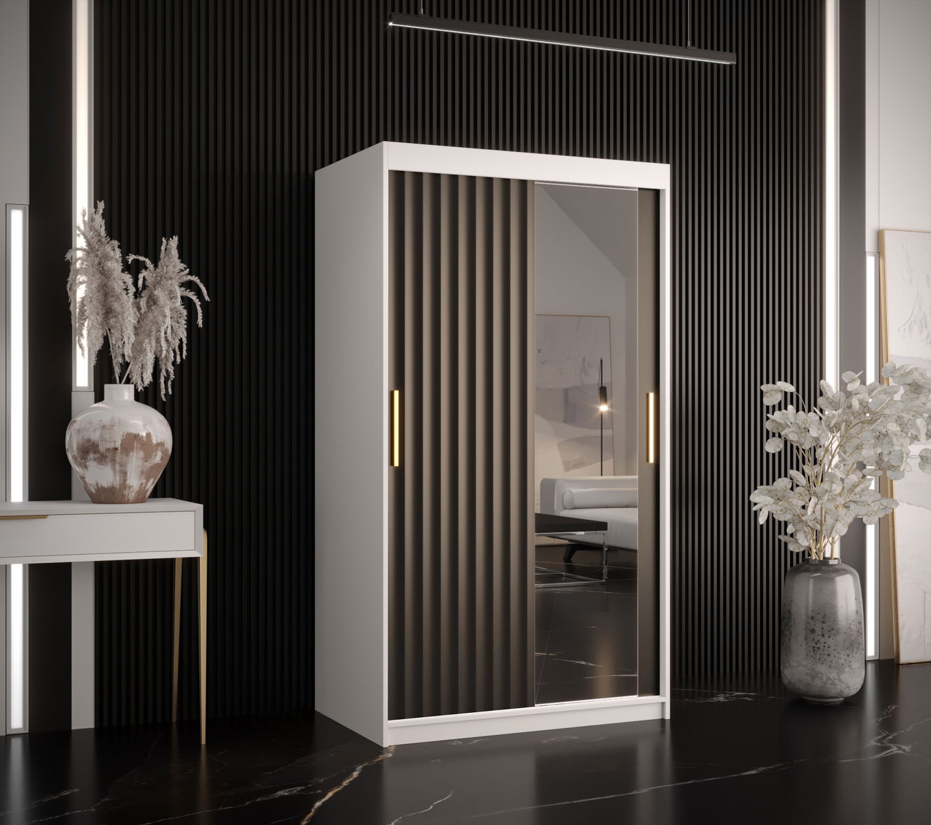 - Dulap de haine cu oglindă 120 cm Riana Wa 2 120 (alb + negru)